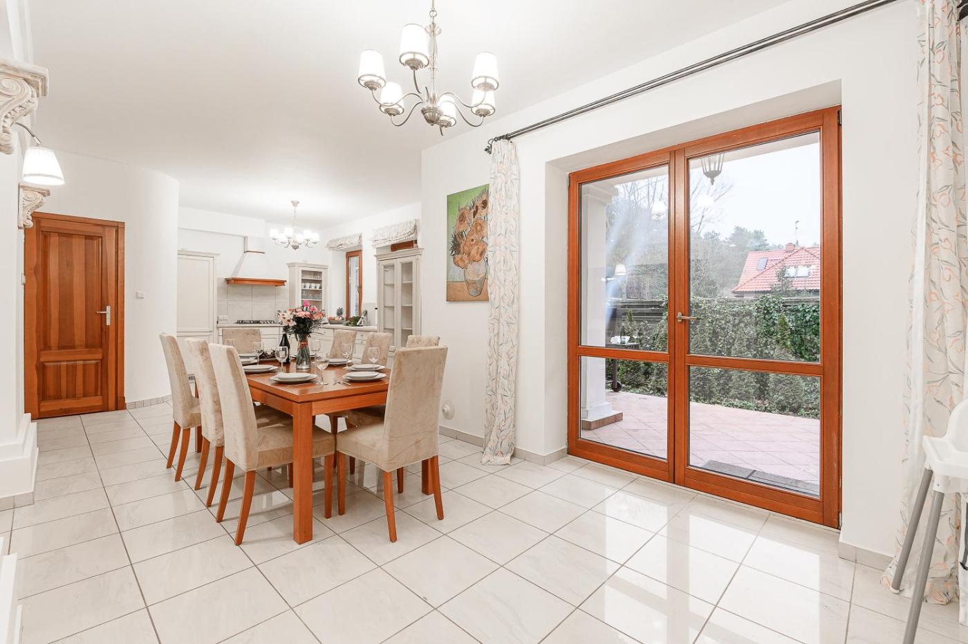 Willa. This spacious villa consists of 1 living room, 5 separate bedrooms and 3 bathrooms with a bath and a shower. Guests will find a stovetop, a refrigerator, a dishwasher and kitchenware in the well-fitted kitchen. The villa also offers a barbecue. The villa provides a washing machine, a private entrance, soundproof walls, a flat-screen TV with streaming services, as well as garden views. The unit offers 6 beds. Willa - 12 osobowy. Powierzchnia pokoju ok.: 250 mkw.